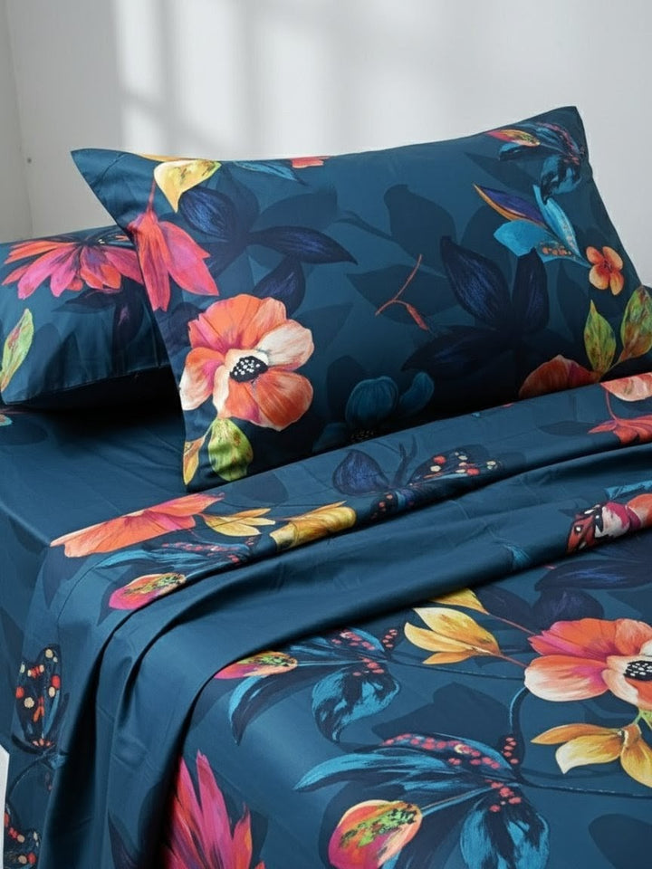 Bring freshness and elegance to your bedroom with our Blue Flower Print Bedsheet. Designed with delicate floral patterns in calming shades of blue, this bedsheet adds a peaceful and stylish touch to your space. Made from high-quality, soft, and breathable fabric, it ensures maximum comfort and durability. Perfect for everyday use, it’s easy to wash, colorfast, and wrinkle-resistant — keeping your bed looking fresh and inviting all the time.