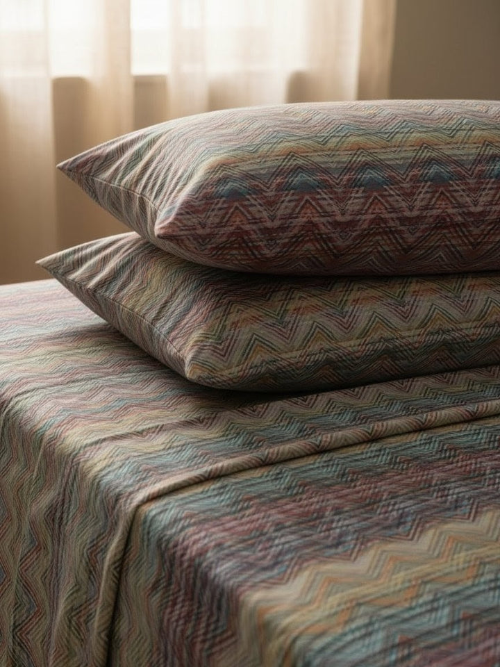 Brighten up your bedroom with our vibrant Multicolour Zig Zag Bedsheet. Designed with eye-catching zigzag patterns in lively hues, this bedsheet adds a fun and energetic vibe to any room. Made from soft, high-quality, and breathable fabric, it ensures a cozy and comfortable sleep experience. The colorfast and durable material keeps its brightness even after multiple washes, making it perfect for everyday use.
